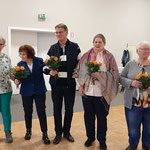 Nach dieser wichtigen Wahl fand auch schon die erste Amtshandlung des neuen Vorstands statt: Die Verabschiedung des alten Vorstands. Mit hübschen Blumen wurden Stefanie Orchard, Birgit Quade und Tanja Lahann für ihre Vorstandsarbeit in den letzten Jahren gedankt. Ein Dank galt ebenso Waltraud Lahann für ihren Einsatz als Ortsvertrauensfrau in Böken sowie Silke Albert und Christina Leykum.