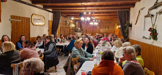 24.01.2025: 65 Landfrauen haben im "Rübezahl" Platz gefunden und schieben Kohldampf. Der Grünkohl und seine Beilagen haben wieder allen gut geschmeckt. Vielen Dank an Elke und Wolfgang Tietz.